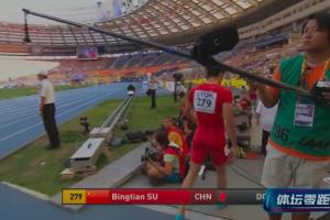 苏炳添:我觉得应该是2013年(莫斯科世锦赛),2013年其实觉得可能自己运气,包括自己的这个经验不够吧,因为当时其实并不是我想要去抢跑,是旁边的人晃了我一下,本能的反应就抢跑了,走的时候我是狠狠的自己扇了一把自己。