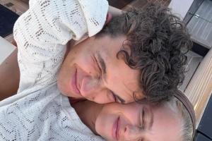 诺里斯夺冠后,女友magui晒出两人的亲密合照,配文写道:我的小小世界冠军😭🧡