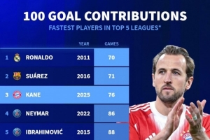 本世纪单一联赛最快参与100球排名(五大联赛):