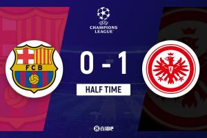 体育资讯12月10日讯 北京时间12月10日04:00,欧冠联赛阶段第六轮巴萨迎战法兰克福的比赛在诺坎普球场进行,上半场莱万包抄破门无效,克瑙夫单刀破门,马丁抽射造险,半场结束,巴萨0-1法兰克福。