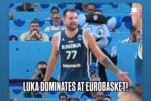 NBA官方与FIBA官方发出东契奇本场比赛高光集锦,封面图配文为:“卢卡称霸欧锦赛!”