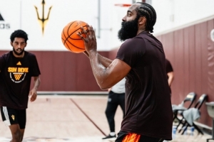 体育资讯9月8日讯 亚利桑那州大男篮更新社媒,晒出了哈登回母校训练的照片。