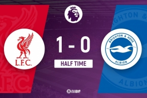 体育资讯12月13日讯 北京时间12月13日晚上23:00,英超第16轮,利物浦坐镇安菲尔德球场迎战布莱顿。上半场,埃基蒂克46秒带球进场,阿利松拒单刀,戈麦斯伤退、萨拉赫替补。半场战罢,利物浦1-0布莱顿。