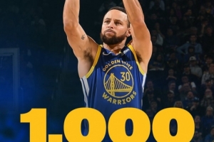 据统计,这场比赛之后,库里常规赛生涯有1000场比赛投进三分,历史第12人,前11位分别是: