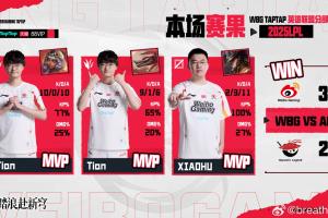 体育资讯9月8日讯 LPL第三赛段WBG击败AL晋级胜者组,赛后呼吸哥更博:继续加油。