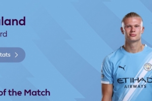 本场比赛哈兰德梅开二度,赛后他也当选英超官方评选出的本场最佳球员。