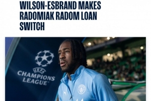 体育资讯9月8日讯 曼城官宣,威尔逊-埃斯布兰德外租至波兰甲级联赛球队拉多米亚克,租期为一个赛季,转会正待获得国际许可。