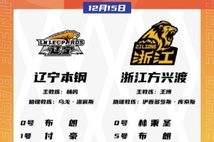 体育资讯12月15日讯 今晚7点35分,辽宁男篮将在主场对阵广厦男篮。