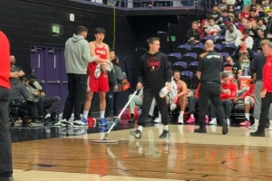 今日,开拓者主帅斯普利特和首发中锋克林根都来到现场观战,暂停期间,克林根还在场边给杨瀚森提供建议。
