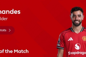 本场比赛B费传射建功发挥出色,赛后他也当选英超官方评选出的本场最佳球员。