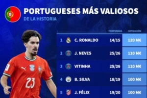 葡萄牙历史上身价最高的球员排名与数据: