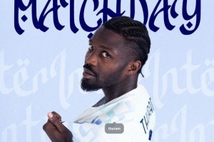 赛前,国米官方社媒为此役发布海报:海报中前锋小图拉姆单人出镜。