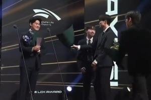 体育资讯12月20日讯 Gumayusi在昨晚的LCK颁奖典礼中,获得“LCK年度ADC选手”奖项;Guma的前T1队友上台送上鲜花。