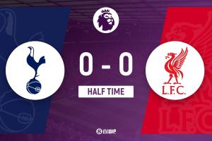 上半场伤停补时3分钟,半场结束,利物浦暂0-0热刺。