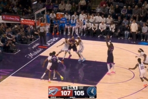 昨日NBA常规赛,雷霆客场107-112不敌森林狼,遭遇赛季第三场失利,NBA官方出具了本场比赛最后两分钟的伤病报告。