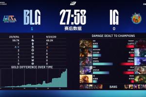 体育资讯9月9日讯 今日LPL季后赛iG对阵BLG的比赛正在进行中,前两局BLG前期通过对线优势成功碾压对手,两局比赛皆用27分钟左右拿下胜利。