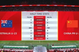 体育资讯09月09日讯 U23亚洲杯预选赛D组第3轮,澳大利亚U23半场0-0中国U22,半场数据统计如图所示。