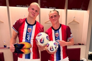 体育资讯9月10日讯 在挪威11-1摩尔多瓦的赛后,哈兰德和阿尔茨加尔德均获得比赛用球。
