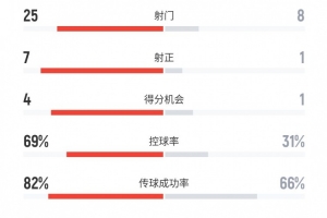 传球成功率:82%比66%