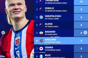6.哈兰德(挪威),vs摩尔多瓦(2025),5球