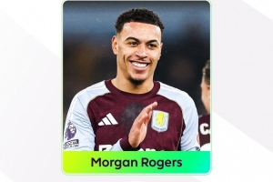 英超第17轮比赛,罗杰斯打进2球,帮助维拉2-1击败曼联,英超官方确认,经过球迷的投票,罗杰斯当选本轮最佳球员。