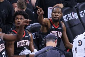 本月,火箭把西部倒五输了个遍,先后负于爵士、独行侠、鹈鹕、国王以及快船。