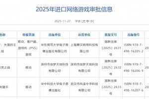 体育资讯12月25日讯 今日国家新闻出版署公开了2025年12月的国产网络游戏版号审批信息。共144款国产网络游戏、3款进口网络游戏过审,还有7款游戏变更审批信息。