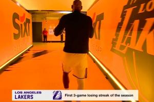 GIF-詹姆斯返回更衣室,字幕给的是湖人赛季首次三连败!