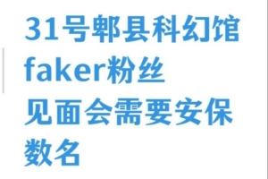 体育资讯12月27日讯 Faker粉丝见面会招聘安保数名维持现场秩序。