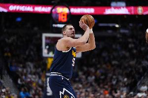 在最近的两场比赛中,约基奇场均45分18.5篮板13.5助攻1盖帽,三项命中率分别是61%、67%和94%,真实命中率高达76.5%。