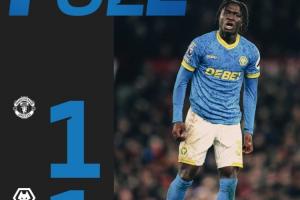 狼队本赛季英超仍一场未胜,19轮仅拿到3分,分别是1-1曼联、1-1布莱顿、1-1热刺。