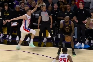 GIF-詹姆斯横撤步假动作三分
