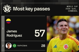 本届南美世预赛关键传球榜: