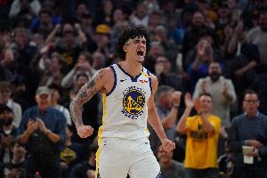 追梦:这两个人能制造大量的混乱。他们俩在那个收官阵容里,制造了好几次关键失误。那是哪一场来着,布鲁克林?然后再快进到今晚,在比赛最后阶段,有这两个人站在第一道防线,我们一次又一次地完成防守成功。
