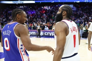 “但我看很多哈登的比赛,那很疯狂,我还和他当过队友,有一段时间他的比赛让你难以置信,我们都在学他的后撤步。我也看很多艾弗森的比赛,艾弗森和韦德,那是我最喜欢的球员,但是费城的3号不能穿了。”