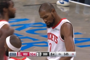 杜兰特13中3 SGA单节10分 火箭13个前场板半场落后雷霆7分!