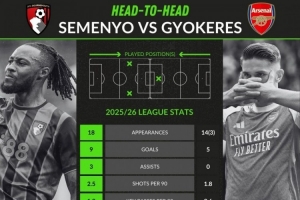 塞梅尼奥(伯恩茅斯):18场首发,9球、3助攻,场均2.5射门、1.3关键传球、预期进球0.43,传球成功率76%,获评7.17分