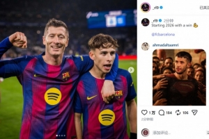 莱万社媒晒照庆祝胜利,他写道:“以一场胜利开启2026年。”