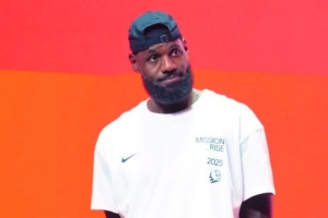 在活动临近结束时,一位激动的男球迷冲上舞台试图接近詹姆斯,被主持人和安保阻拦。期间,詹姆斯显得十分淡定,没有任何反应。在该冲动球迷被带下舞台后,詹姆斯无奈地摇头笑了笑。