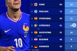 1、姆巴佩 67场16球