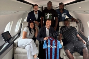 罗马诺社媒晒出奥纳纳与家人、经纪人在飞机上展示特拉布宗体育球衣的照片。