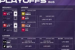 体育资讯09月11日讯 LCK季后赛胜者组次轮赛程公布,GEN.G拥有优先选择对手的权利,最终GEN选择KT,HLE自动选择T1。