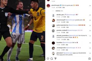 阿根廷客场0-1不敌厄瓜多尔,因卡皮耶放倒马斯坦托诺后,麦卡利斯特为小将出头。