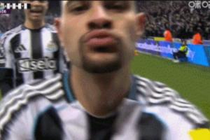 体育资讯01月05日讯 英超第20轮,纽卡在主场2-0战胜水晶宫队,在比赛第71分钟,吉马良斯进球后做出了亲吻镜头的庆祝动作。