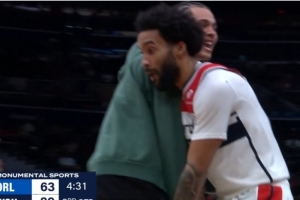 赚到!贝恩大帽韦尔斯被吹犯规 魔术挑战成功取消犯规还拿到球权