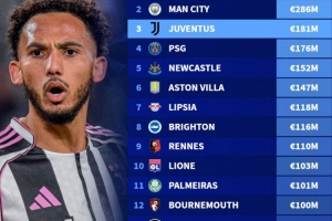 冬窗历史转会支出榜:切尔西压曼城居首,前十英超8队+巴黎尤文