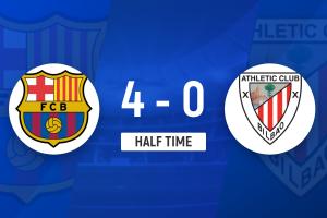 体育资讯1月8日讯 北京时间1月8日凌晨3时整,西班牙超级杯半决赛在吉达阿卜杜拉国王体育场展开角逐,巴塞罗那对阵毕尔巴鄂竞技。上半场费兰首开记录,费尔明2传1射,拉菲尼亚和巴德吉均献传射,西蒙送礼,巴塞罗那暂时4-0领先毕尔巴鄂竞技。