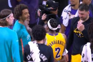 尚帕尼替队友出头推了一把范德彪,福克斯和东契奇赶紧劝架
