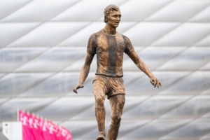 体育资讯9月13日讯 安联球场外的贝肯鲍尔雕像已经揭幕,拜仁高层们一同在雕像前合影。