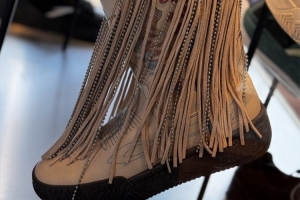 体育资讯9月13日讯 今天欧文在纽约出席了HÉLÀ STYLED欧文风格空间的活动,在活动上也展示出了不少欧文参与设计的鞋款。